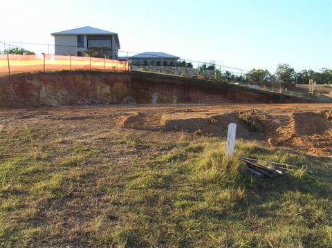 This is a normal house block. We striped the top soil, cut and filled the block down 3.5 metres and built a Sandstone Retaining Wall