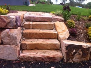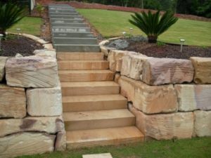 ROUGH CUT SANDSTONE STEPS. SANDSTONE STAIRS. Sandstone Steps Brisbane area.